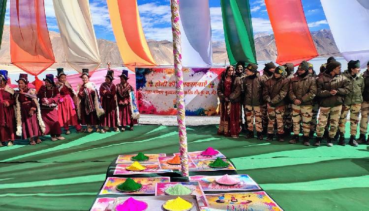 The Indo-Tibetan Border Police (ITBP) posted on X, “Holi at 14,300 ft! Amid the frozen expanse of Pangong Lake (14,300 ft), #ITBP troops of North West Frontier celebrated Holi with residents of Vibrant villages. Local children presented a lively cultural programme, adding colour & warmth to the high-altitude celebrations.”