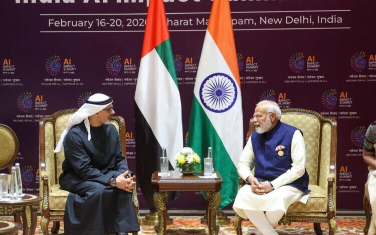 New Delhi: Prime Minister Narendra Modi and Abu Dhabi Crown Prince Sheikh Khaled bin Mohamed bin Zayed Al Nahyan held a meeting on the sidelines of AI Impact Summit in New Delhi on Thursday, discussing ways to enhance bilateral cooperation, including in the field of Artificial Intelligence (AI).